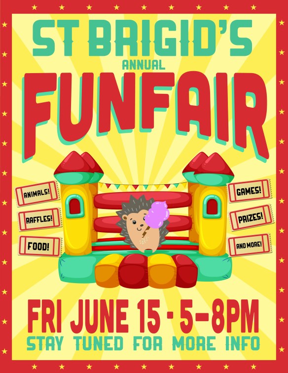 – BAKE SALE – Are you a master baker, or do you have a fun, simple PEANUT-FREE recipe you could put together for the day of the Fair? IF so, please email stbrigidcsac@gmail.com and we will put you in touch with Michelle Holder.