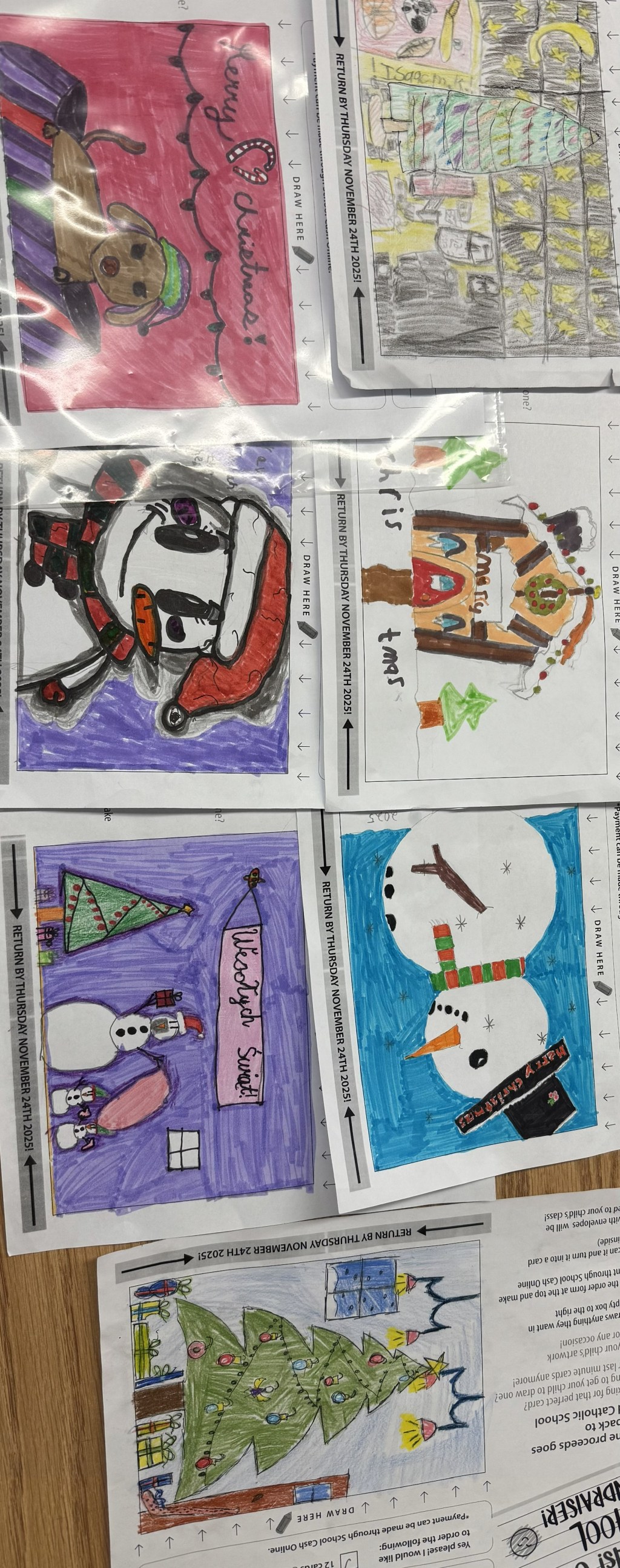 This year we have a fun, optional chance to have your child draw or paint a picture and have it printed on holiday cards for loved ones. No obligation but hopefully it shortens card-making time and 20-30% of proceeds will also go back to the school – win-win!